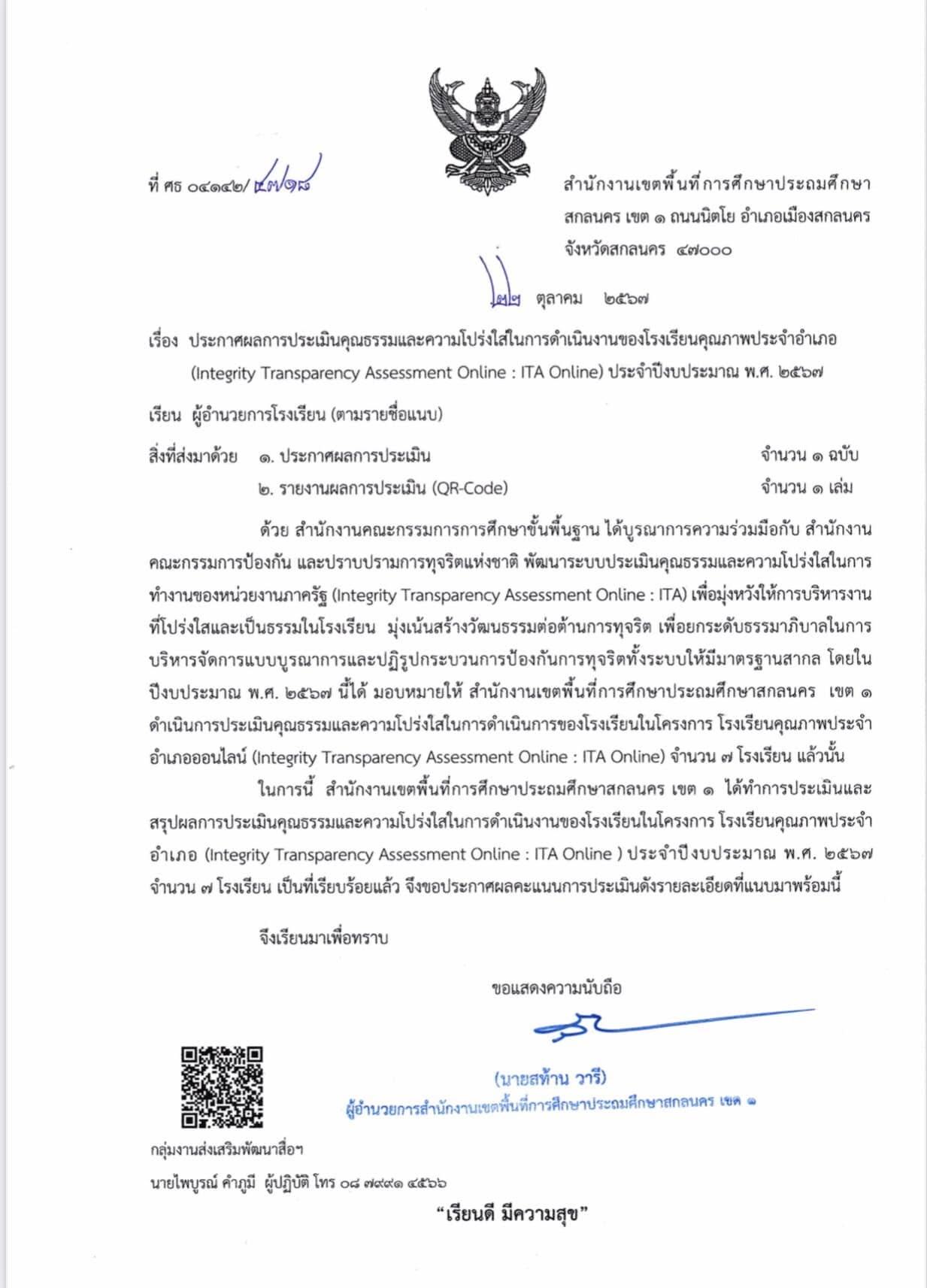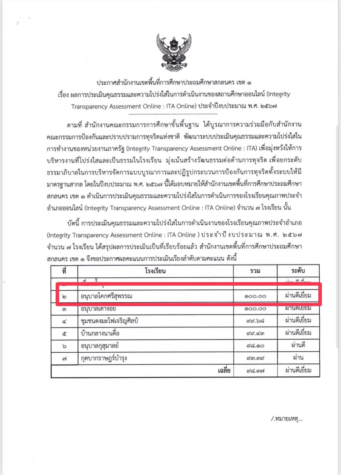ผลงานรางวัลเด่น ผลการประเมินคุณธรรมและความโปร่งใสในการดำเนินงานของโรงเรียนคุณภาพประจำอำเภอ (Integrity Transparency Assessment Online : ITA Online) ประจำปีงบประมาณ พ.ศ. 2567 22 ตุลาคม 2024 admin Screenshot