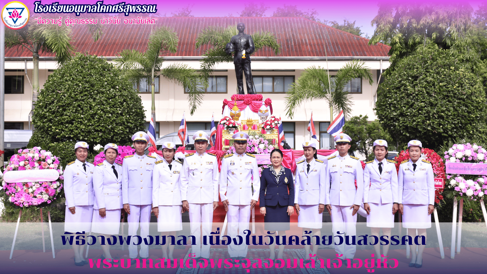 วันพฤหัสบดี ที่ 23 ตุลาคม 2568 นายอุเทน ทองสวัสดิ์ ผู้อำนวยการโรงเรียน นางสาวสุวรรณา เทียบมา รองผู้อำนวยการโรงเรียน คณะครูและบุคลากรทางการศึกษา เข้าร่วมพิธีวางพวงมาลาและถวายราชสดุดี เนื่องในวันปิยมหาราช วันคล้ายวันสวรรคตพระบาทสมเด็จพระจุลจอมเล้าเจ้าอยู่หัว วันที่ 23 ตุลาคม 2568 ณ บริเวณลานพระบรมราชานุสาวรีย์รัชกาลที่ 5 หน้าที่ว่าการอำเภอโคกศรีสุพรรณ จังหวัดสกลนคร เพื่อน้อมรำลึกถึงมหากรุณาธิคุณที่ทรงบำเพ็ญพระราชกรณียกิจ จนเกิดประโยชน์แก่ประเทศชาติ และพสกนิกรชาวไทยอย่างใหญ่หลวง