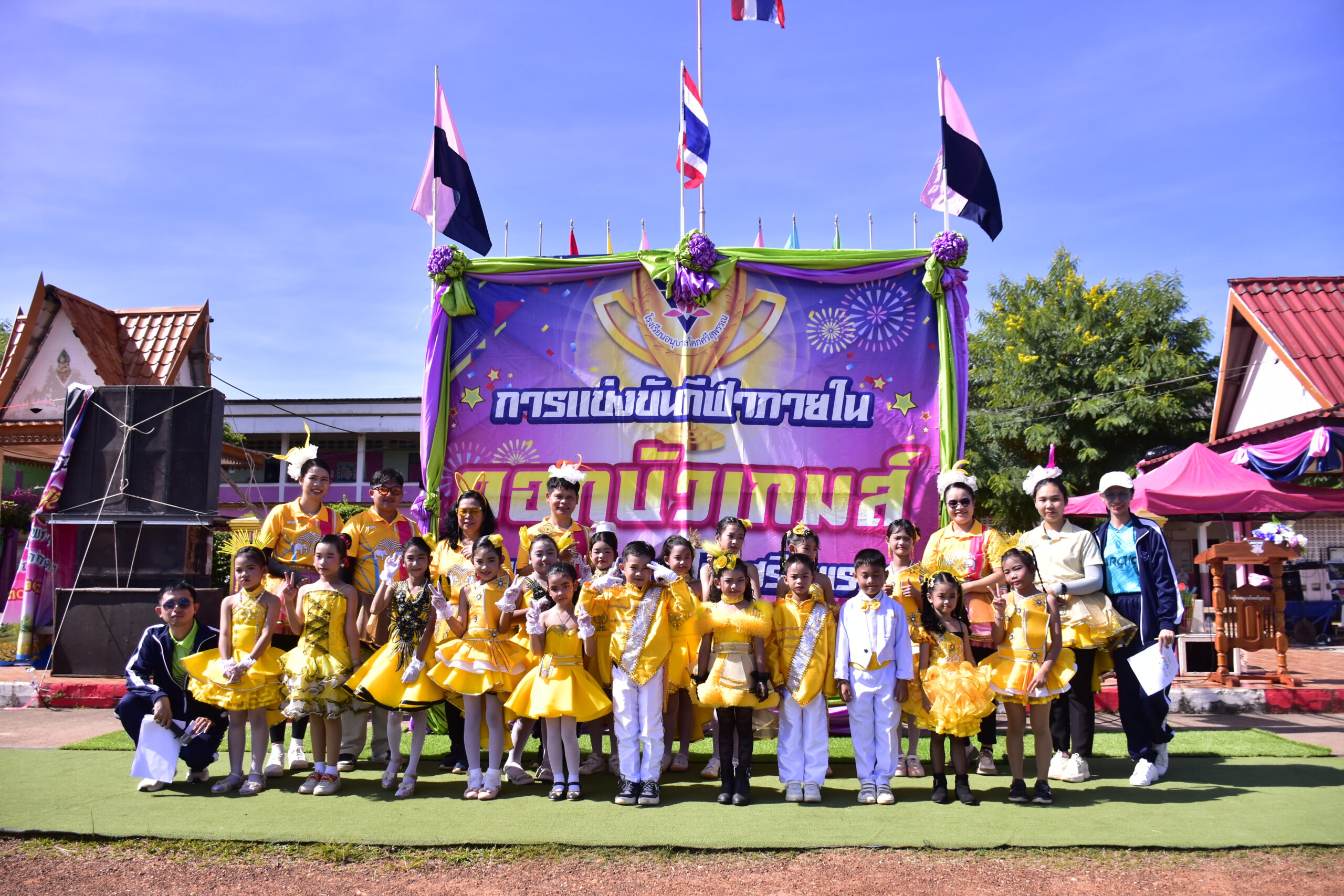วันพฤหัสบดี ที่ 9 ตุลาคม 2568 โรงเรียนอนุบาลโคกศรีสุพรรณ จัดพิธีเปิดและปิดอย่างเป็นทางการ ในการจัดการแข่งขันกีฬาภายใน ประจำปีการศึกษา 2568 ณ สนามกีฬาโรงเรียนอนุบาลโคกศรีสุพรรณ โดยมี นายอุเทน ทองสวัสดิ์ ผู้อำนวยการโรงเรียน เป็นประธานในพิธี ในการจัดกิจกรรมในครั้งนี้มีวัตถุประสงค์ เพื่อเสริมสร้างความสามารถด้านทักษะการแข่งขันกีฬา มารยาทในการชมกีฬา รวมถึงส่งเสริมให้นักเรียนมีคุณธรรม จริยธรรม มีน้ำใจนักกีฬา รู้แพ้ รู้ชนะ และรู้จักให้อภัย มีนักเรียนเข้าร่วมกิจกรรมตั้งแต่ชั้นอนุบาล 2 ถึงชั้นประถมศึกษาปีที่ 6 แบ่งออกเป็น 4 สี คือสีฟ้า สีเหลือง สีแดง และสีเขียว โรงเรียนอนุบาลโคกศรีสุพรรณ ขอขอบคุณผู้มีอุปการะคุณ แขกผู้มีเกียรติทุกท่าน ผู้ปกครอง ผู้นำชุมชน ที่ให้ความร่วมมือในการจัดกิจกรรม รวมถึงให้การสนับสนุนทุน ขนม น้ำ ของรางวัล เพื่อเป็นขวัญและกำลังใจให้แก่บุตรหลานของท่านเป็นอย่างสูง