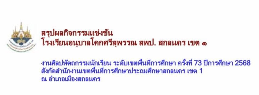โรงเรียนอนุบาลโคกศรีสุพรรณ ขอแสดงความยินดีกับนักเรียนที่ได้รับรางวัล 25 เหรียญทอง 1 เหรียญเงิน พร้อมครูผู้ฝึกซ้อมนักเรียน ซึ่งผลกิจกรรมการแข่งขันงานศิลปหัตถกรรมนักเรียน ระดับเขตพื้นที่การศึกษา ครั้งที่ 73 ปีการศึกษา 2568 โรงเรียนอนุบาลโคกศรีสุพรรณ ได้รับรางวัลอันดับ 1 ของเขตพื้นที่การศึกษาประถมศึกษาสกลนคร เขต 1