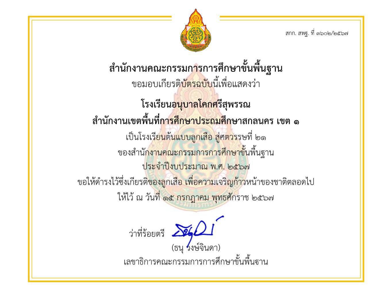 ผลงานรางวัลเด่น โรงเรียนอนุบาลโคกศรีสุพรรณ ผ่านการคัดเลือกตามหลักเกณฑ์และวิธีการคัดเลือกโรงเรียนต้นแบบลูกเสือ สู่ศตวรรษที่ 21 ของสำนักงานคณะกรรมการการศึกษาขั้นพื้นฐาน ประจำปีงบประมาณ พ.ศ. 2567 15 กรกฎาคม 2024 admin